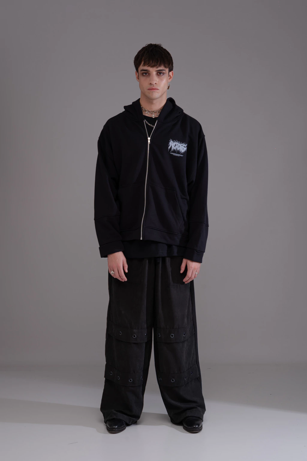 Para este zip-hoodie desarrollamos una mordería boxy holgada, práctica y atemporal.